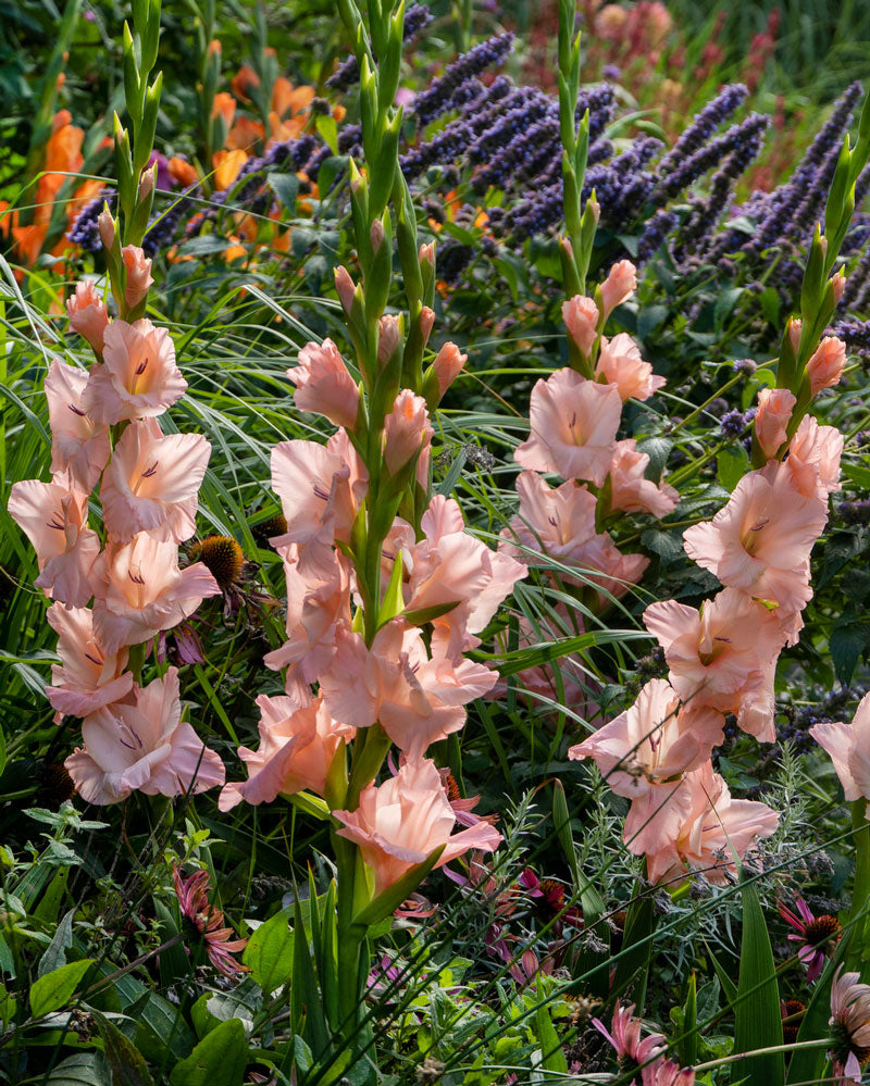 • Gladiolus look best planted in dense groups. They not only look better en masse, but they also support each other as they grow.