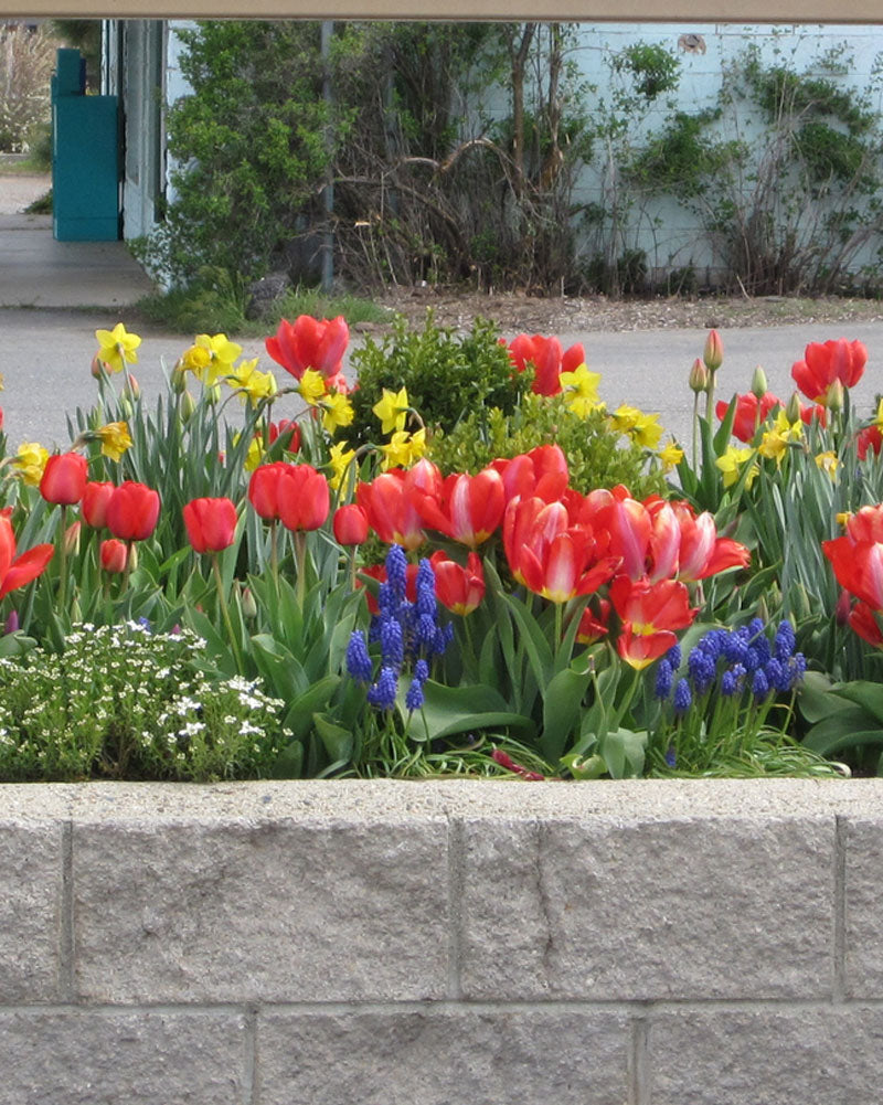 Layering your bulbs is a great way to maximize your spring bulb displays. In nature, different bulbs establish themselves at different depths in the soil, so we can imitate nature by doing it ourselves. Plant a large bulb and a small bulb (or two) in the same planting hole. It’s a great labor saver and makes the spring display that much longer and more colorful.