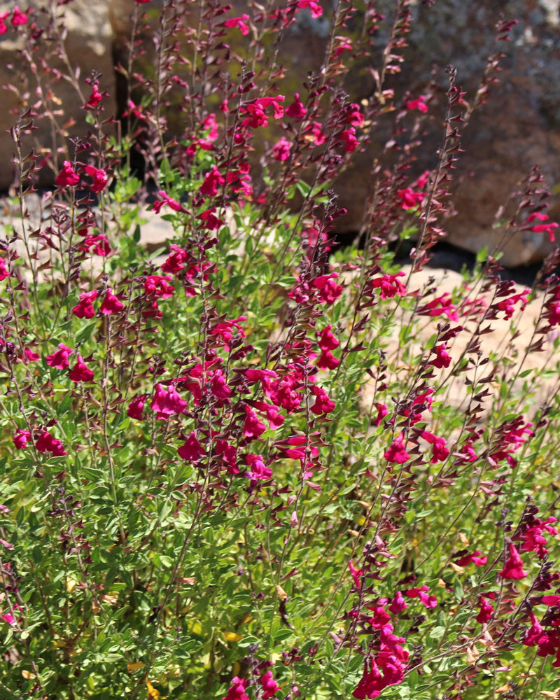 Salvia greggii cultivars and hybrids, such as like Raspberry Delight®, 'FlowerKisser® Royal Rose', 'FlowerKisser® Dark Shadows', 'FlowerKisser® Coral-Pink', ‘Furman’s Red’, ‘Cold Hardy Pink’, ‘Ultra Violet’, and other shrubby sages: