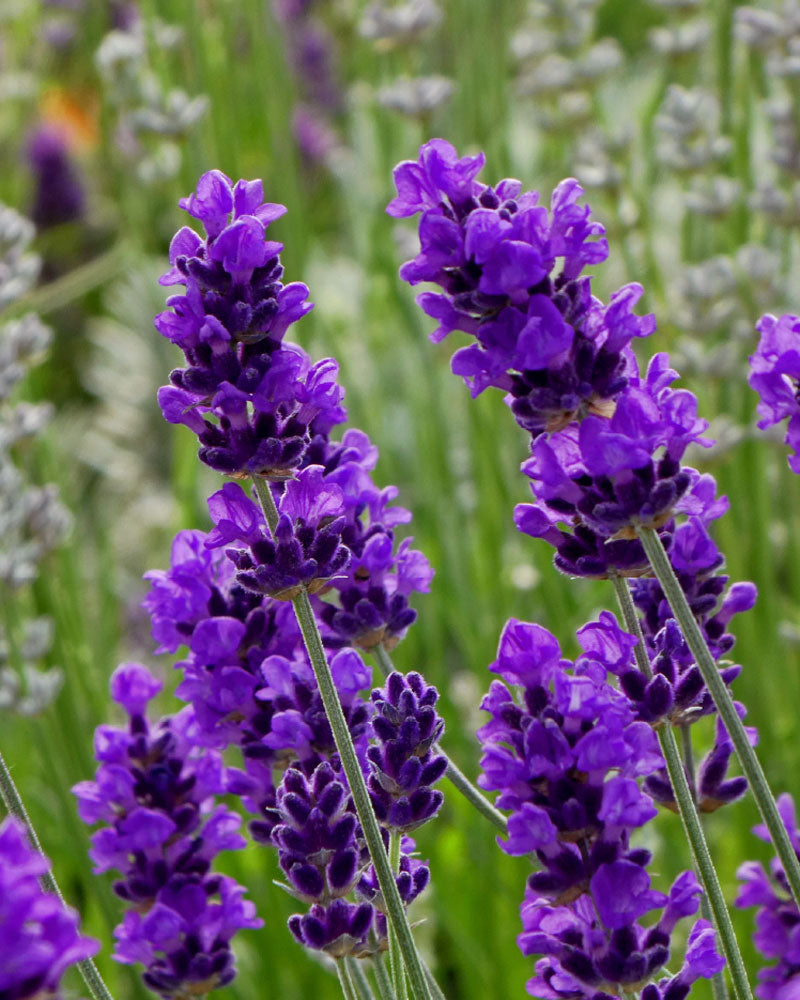 Darker and more vividly colored than its parent, the stunningly unique violet-purple flowers (botanically known as “corollas”) contrast vividly with the dark ink-blue buds (“calyxes”) making a darkly colored flower spike unmatched by any other Lavender variety.