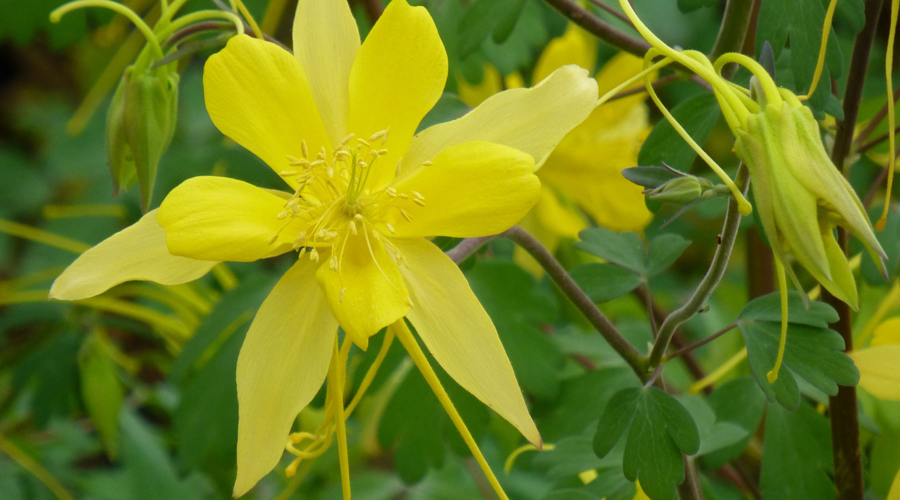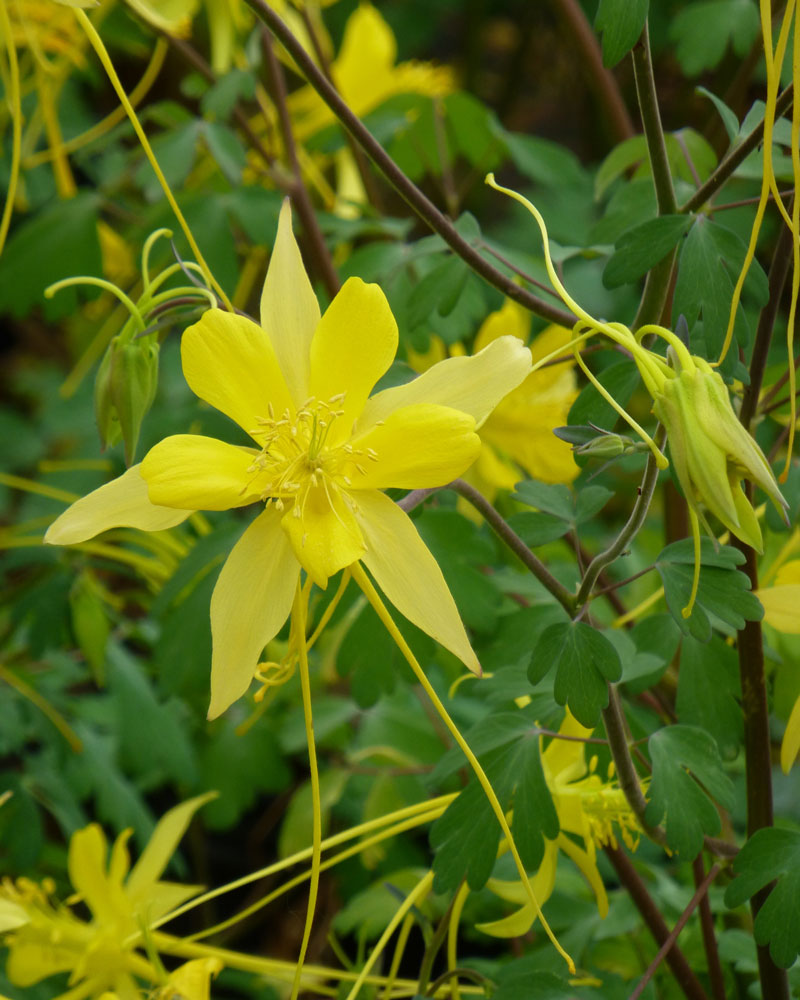 Aquilegia chrysantha v. chapellinii โLittle Treasureโ is another favorite of mine. It is a short growing variety that I bred many years ago from wild collected seed gathered in south-central New Mexico. โLittle Treasureโ flowers at about 15 to 16 inches in height with compact, bright yellow flowers facing up to the sky like a nest of baby birds waiting for their mother. The foliage is fine textured and looks just like that of a Maiden Hair Fern. This is a very nice, very distinctive native variety that blooms for several months beginning in late spring.