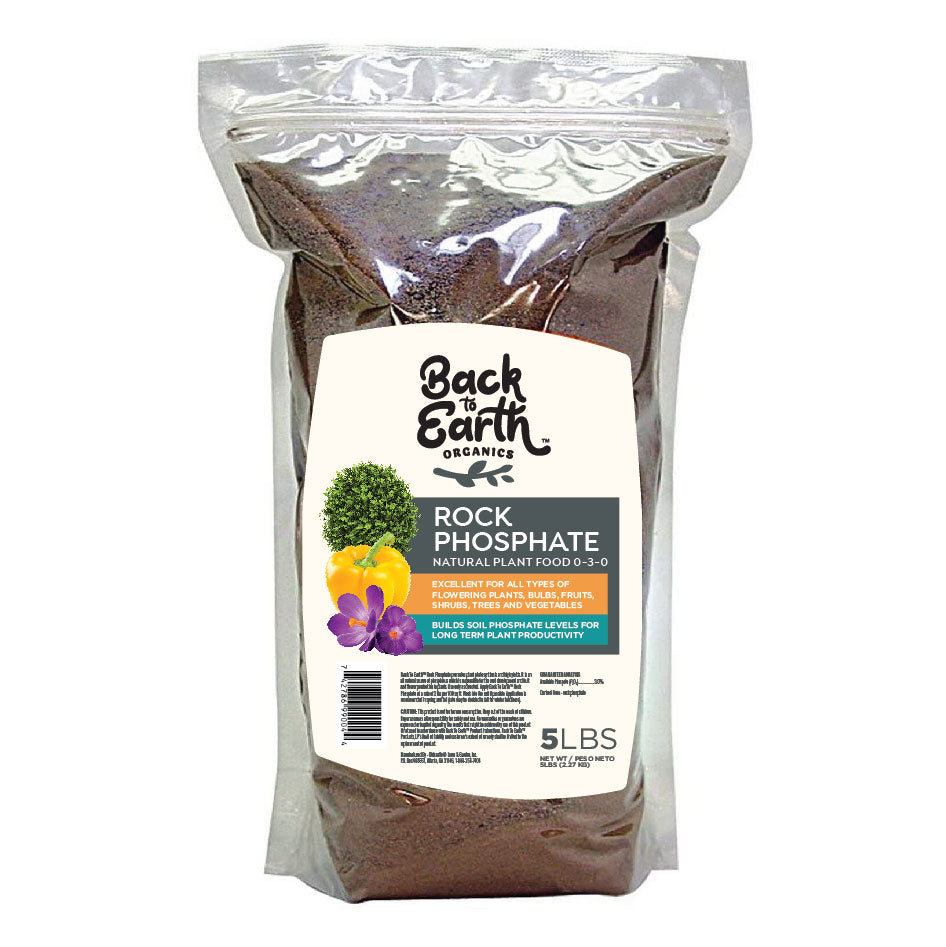 • Back to Earth Organics Rock Phosphate, an all natural source of phosphorus, promotes plant photosynthesis, growth and high yields.