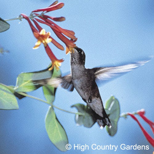 This beauty is a compact grower with a spectacular show of long, orange-yellow throated tubular flowers in spring. Often reblooms lightly in summer. Because of its semi-vining habit, it is a great choice for courtyards and other smaller spaces. After the flowers are done, the showy, bright red berries are food for the songbirds.