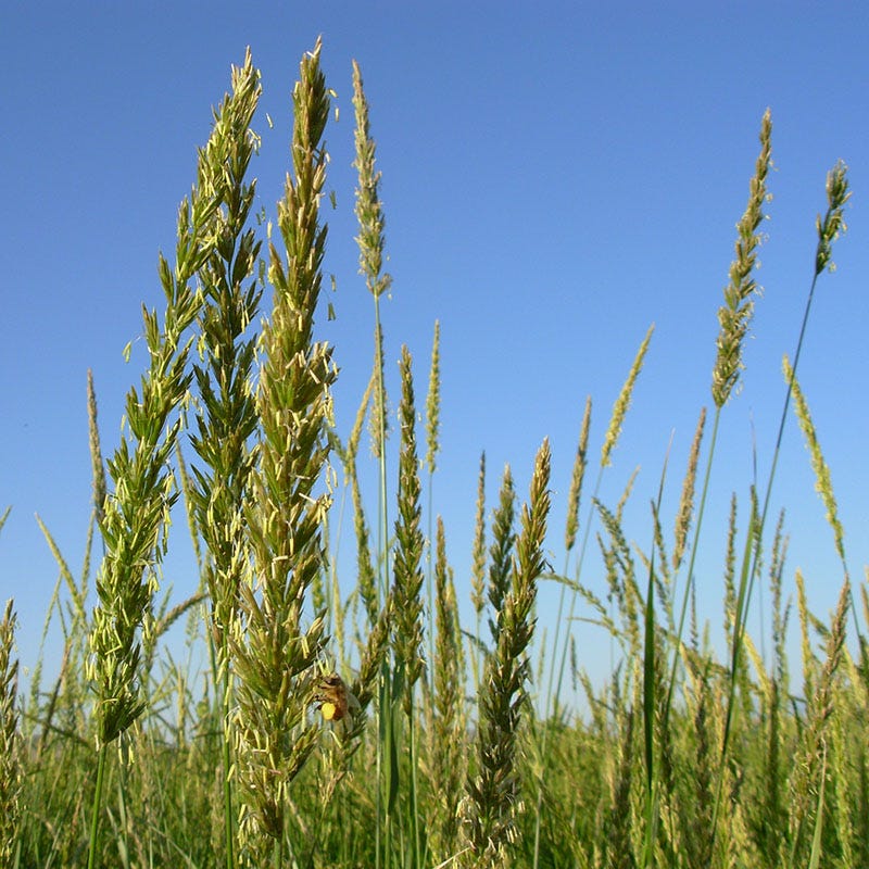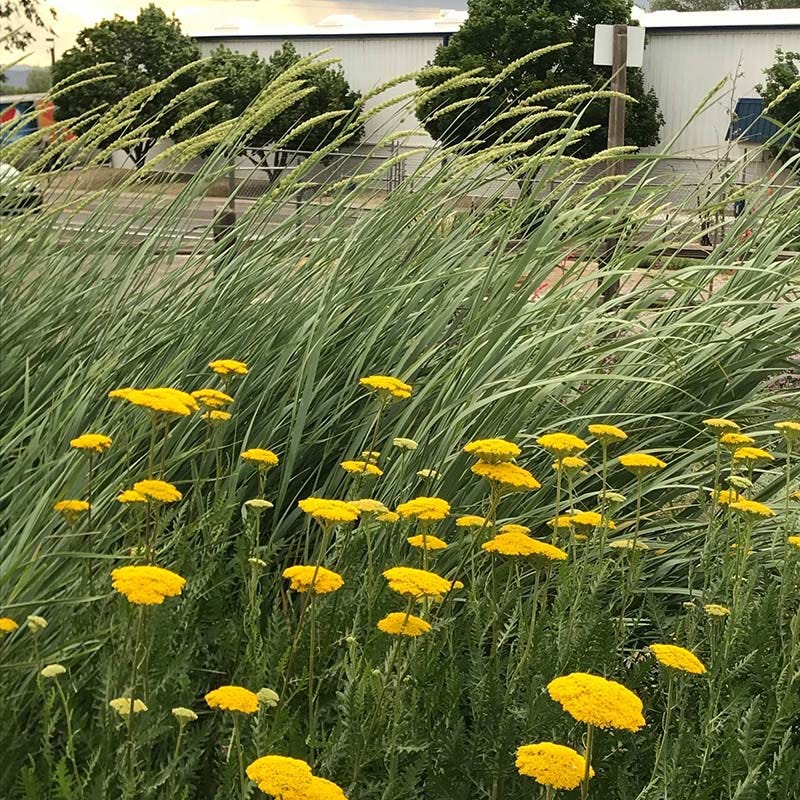 Leymus cinereus (Great Basin Wildrye) is a very tall growing, native, cool season grass. It blooms in late spring with long spikes of tan flowers held straight-up over stunning blue foliage. Late spring blooms are a valuable attribute, as most other large native grasses are warm season growers that flower much later in the summer and fall. The tan-and-blue grass is a perfect addition to sophisticated grass plantings, and an excellent companion for later blooming perennials.