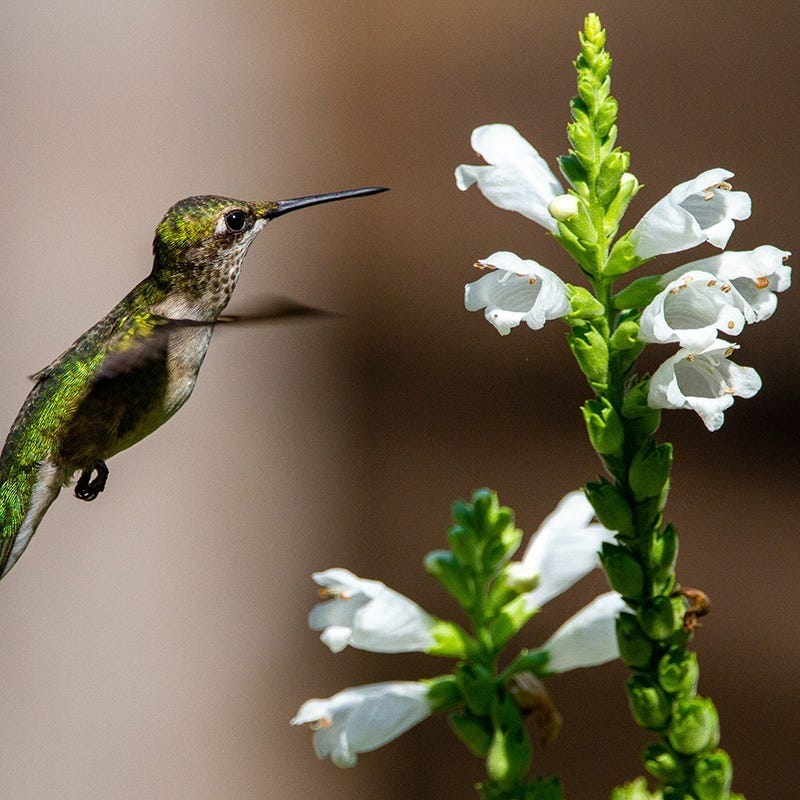 Physostegia virginiana 'Crystal Peak White' (Obedient Plant) is an award winning native cultivar selected for its compact habit and long bloom time