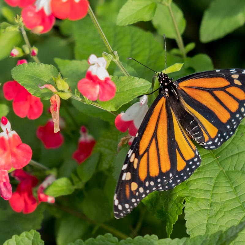 Salvia microphylla 'Hot Lips' (Littleaf Sage) has distinctive, brilliantly colored flowers that make 'Hot Lips' Salvia a special selection. Blooming from spring until hard frost in fall, the flower color will vary seasonally. In the cooler times of spring and fall, the flowers are strongly bi-colored red and white. When it's hot, the flowers go solid red. Regardless of the time of the growing season, this ever-blooming selection is a beauty. The plant makes a small shrub with age and thrives in poor soils with plenty of heat and sun. Plant with Lavender (Lavandula) and white Appleblossom Grass (Gaura). Javelina resistant