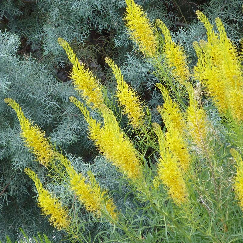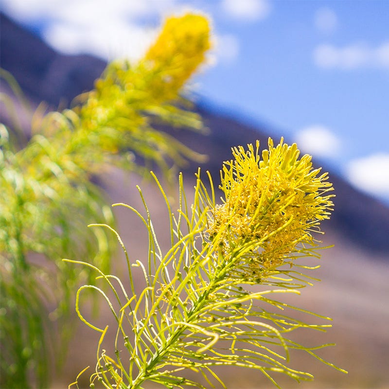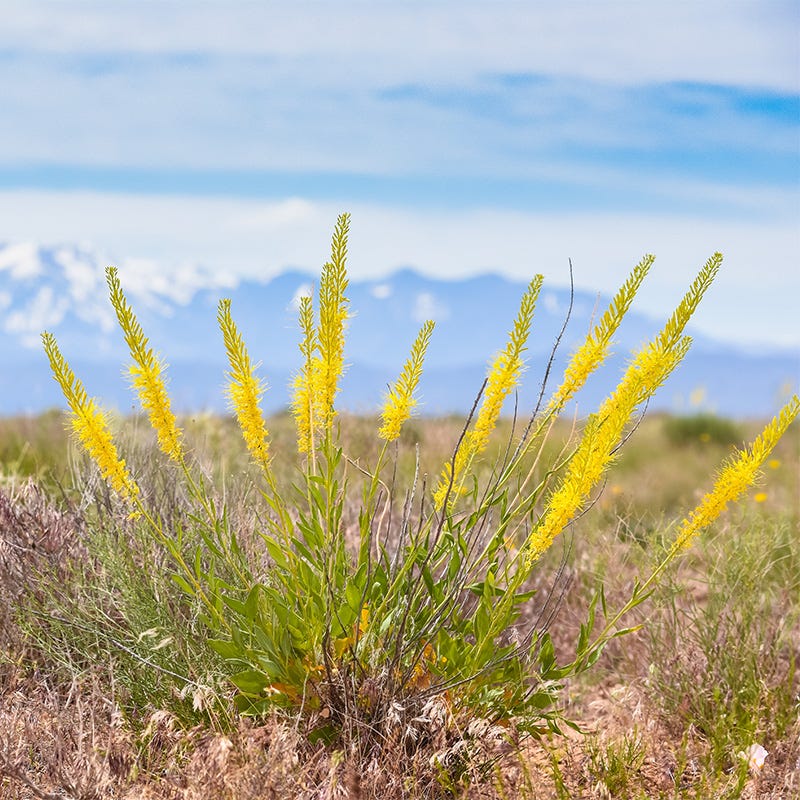 Stanleya pinnata (Prince's Plume) has striking presence in the open landscape, bearing bright yellow flower spikes over feathery silver foliage. A native of the North American West and Southwest, its hardy, long-lasting flowers that can last for weeks, or months in the right conditions, serving as a beacon for attracting pollinators. 'Prince's Plume' is a fascinating and deer-resistant addition to xeriscapes in arid, semi-desert conditions. (Stanleya pinnata)