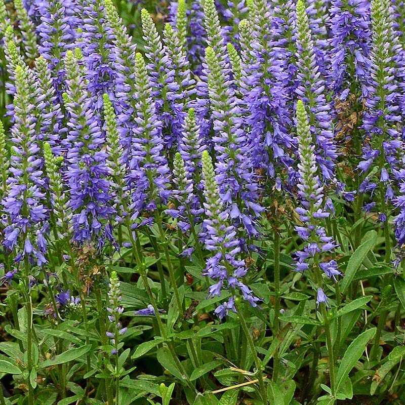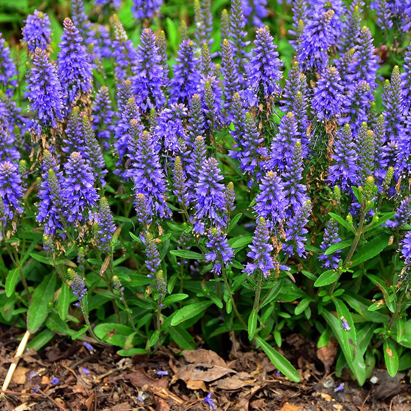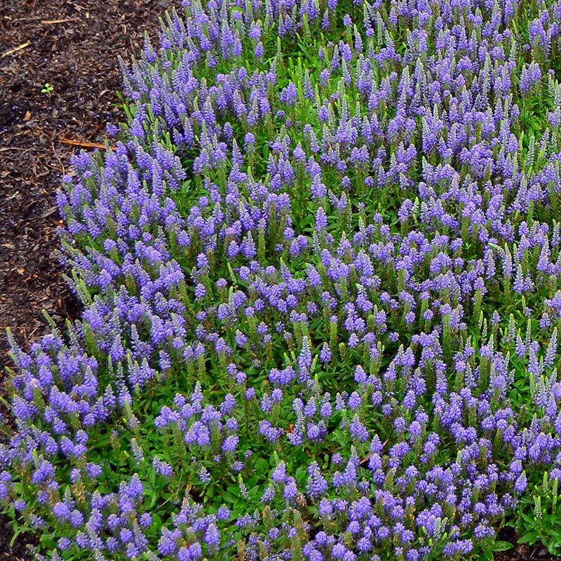 Veronica x ‘Blue Sprite’ (Creeping Speedwell) is a charming hybrid that combines the groundcover habit of traditional creeping speedwells with the upright flower spikes of taller cultivars. Small, emerald, green leaves form a dense foliage carpet, making this a great choice for an attractive, low-water lawn alternative. Plant along borders, in rock gardens and in containers on patios and balconies to add a splash of color to small spaces.